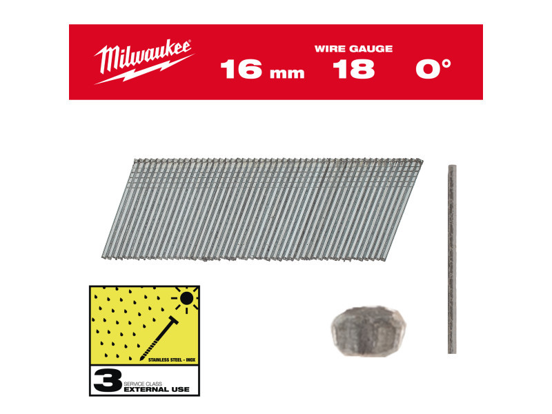 MILWAUKEE Finishing-Nägel, kopflos, Edelstahl, 18G 0° SC3 – 1,05 x 1,25 x 16 mm (10000 Stück)