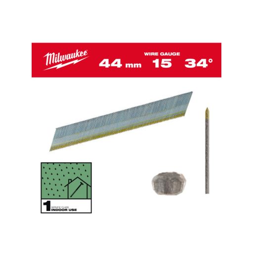 MILWAUKEE Abschlussnägel, D-Kopf, verzinkt 15G 34° SC1 – 1,8 x 44 mm (2500 Stück)