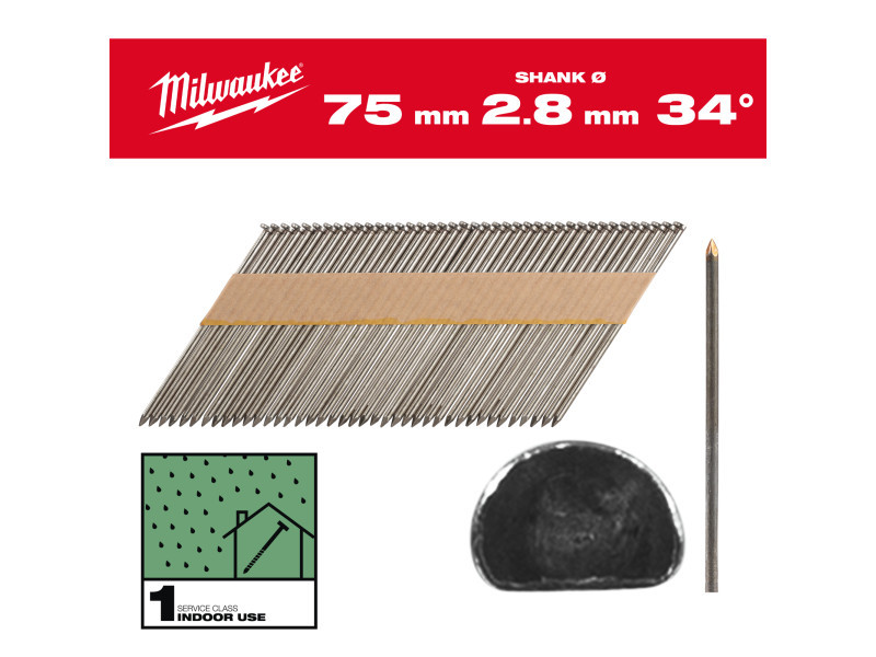 MILWAUKEE Konstruktionsnägel, D-Kopf, blank, 34° SC1 - 2,8 x 75 mm (2200 Stück)