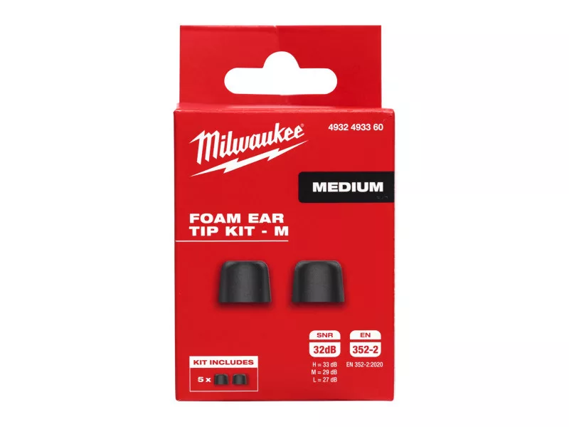 MILWAUKEE Gehörschutz Bluetooth-Ohrstöpsel-Ersatzeinsatz mit Memory-Schaum, Größe M (5 Paar/Karton)
