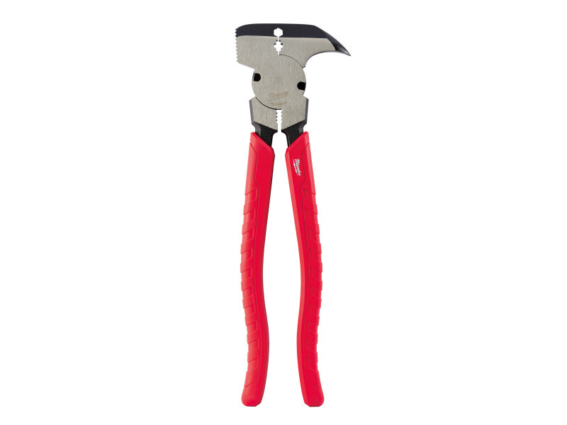 Multifunktionales Design mit 6 verschiedenen Funktionen, einschließlich Nagelzieher, Klammerzieher, Klammerzange, Zaundrahtschneider, Zaundrahtzieher, Zaundrahtspanner und allgemeinen Hammer.