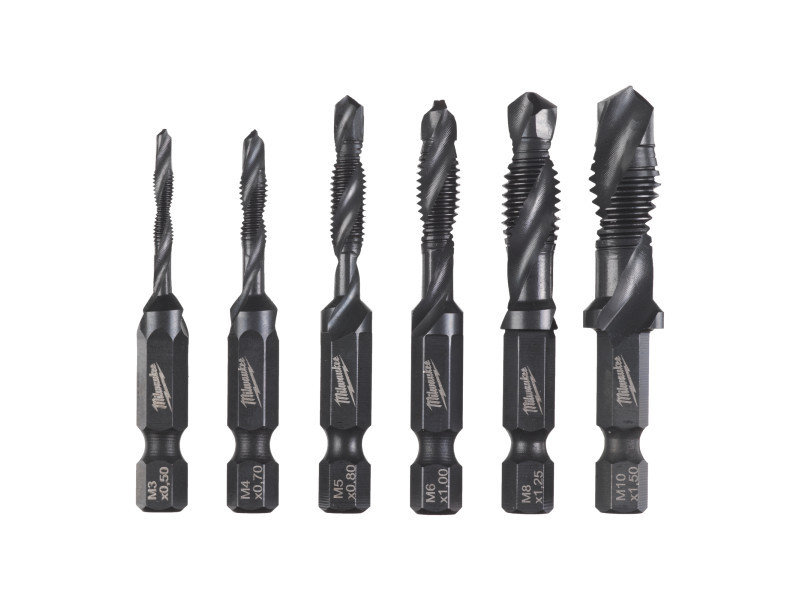 MILWAUKEE Kombiniertes Gewindebohrer-Set 6-teilig 1/4" Sechskant (Bohrer, Gewindeschneider, Entgrater)