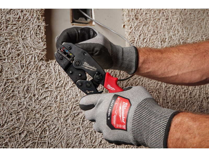 A dupla racsnis mechanizmus teljes és alapos krimpelést biztosít, amely garantálja a biztonságos csatlakozásokat