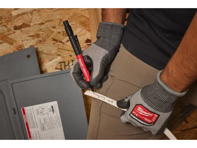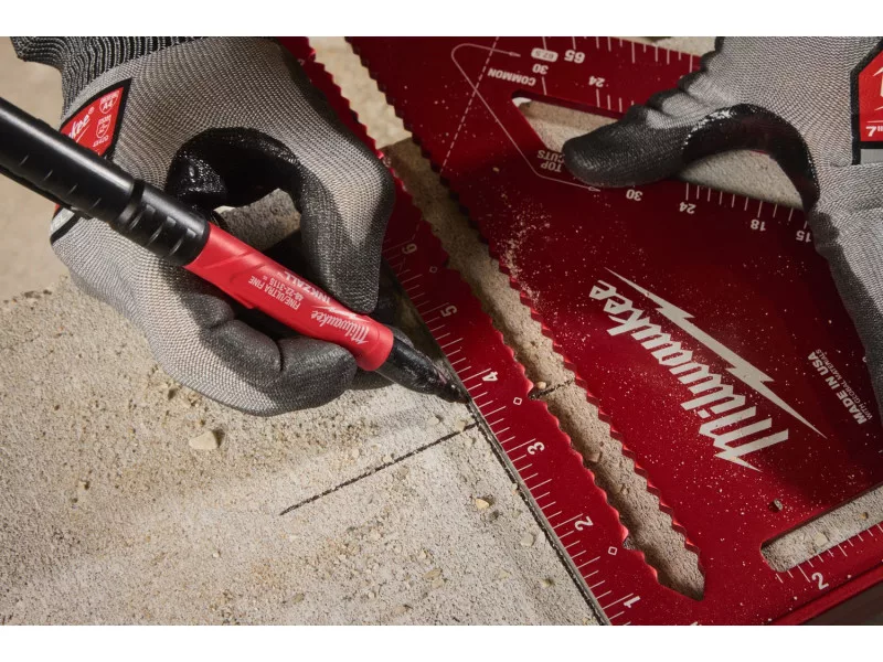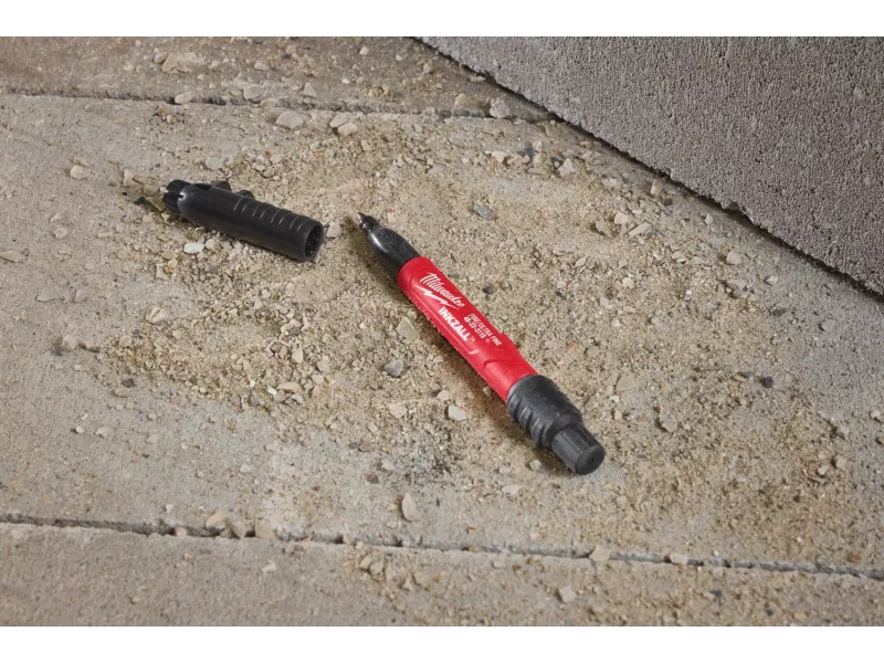 Tartós jelölőhegy, amely betonra, OSB-re és durva munkaterületi felületekre ír.