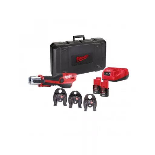 MILWAUKEE Akku-Hydraulikpresse M12 HPT-202C M-SET 15/22/28 mm (2 x 2,0 Ah Akku + Ladegerät)