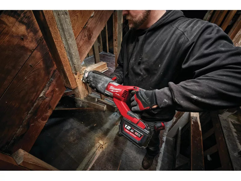 • Dank der Leistung der M18 FUEL™ Super SAWZALL™ bietet sie dieselbe Schnittgeschwindigkeit wie ein vergleichbares kabelgebundenes Säbelsäge - mit einem 12,0 Ah-Akku kann sie 150 Stücke Kiefernholz von 290 mm x 45 mm durchschneiden