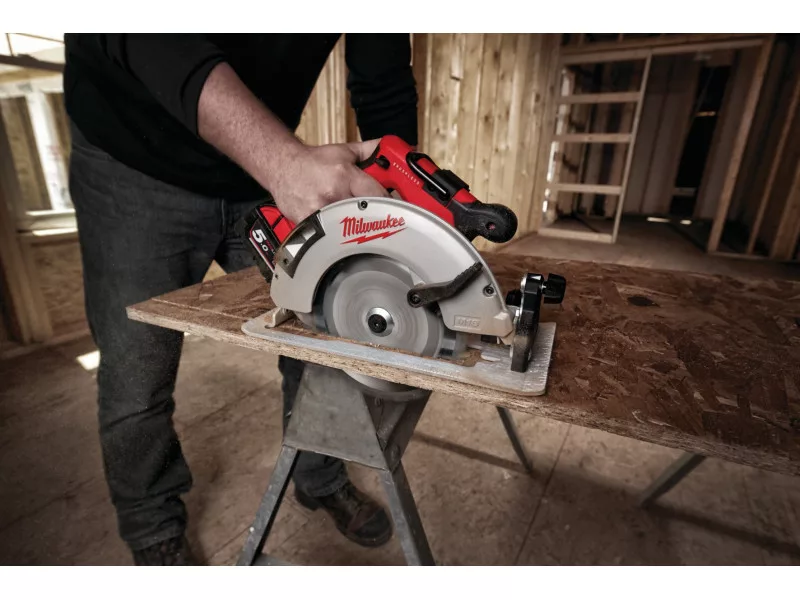 • M18™ szénkefe nélküli körfűrész 190 mm-es fűrészlappal 66 mm-es vágási mélységet tesz lehetővé, akár 3 egymásra rakott 19 mm-es OSB lapot is elvág