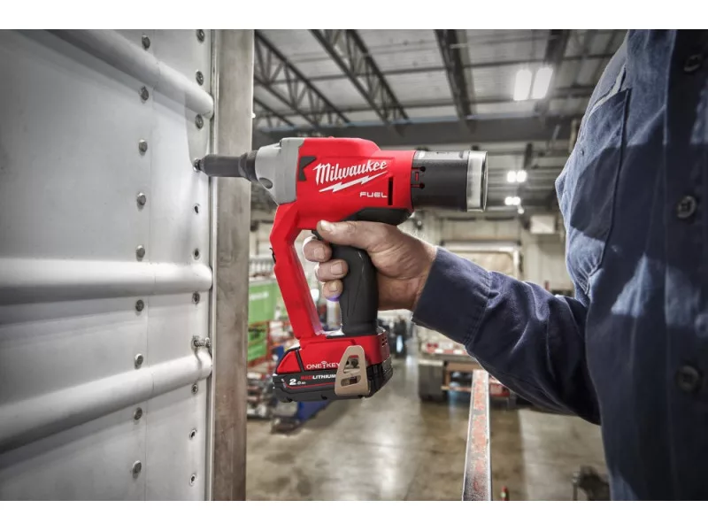 • Der M18 FUEL™ Blindnietenzange mit ONE-KEY™-Technologie ist eine optimierte kabellose Lösung, die schnelles und einfaches Nieten ermöglicht, ohne Leistung, Haltbarkeit und Größe zu beeinträchtigen.
