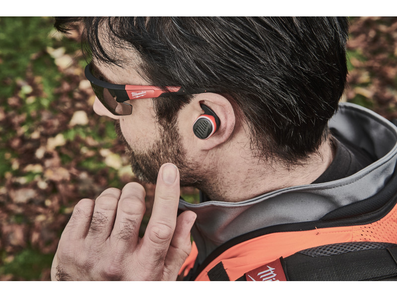 Passiver Gehörschutz, der für den Einsatz während des Stehens konzipiert wurde, wird durch Silikon- und Schaumstoff-Ohrstöpsel sichergestellt.