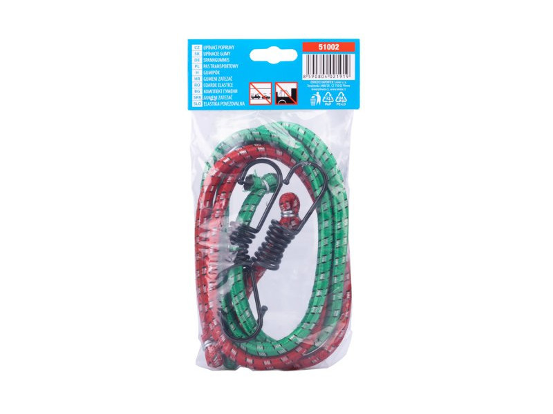 Elasztikus gumipántok, poliészterrel fonva, és mindkét oldalon műanyag bevonatú acélhuzal kampókkal végződnek a csomagok rögzítéséhez.
