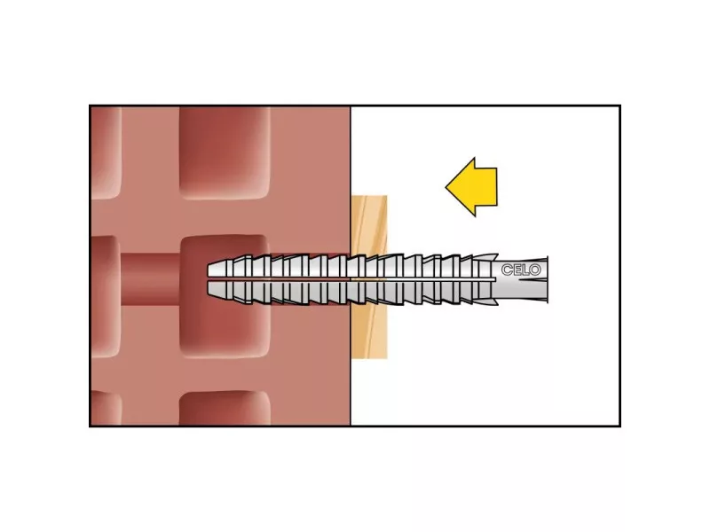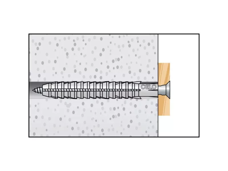 Der CELO FL extra lange Nylon-Dübel ist dank seines langen Verankerungsabschnitts gleichermaßen in Voll- und Hohlbaustoffen oder porösen Strukturen (z.B. in alten Gebäuden) einsetzbar. Der kopflose Design ermöglicht die Durchsteckmontage. Die Flügelkonstruktion verhindert das Verdrehen im Bohrloch. Der Dübel besteht aus hochwertigem, alterungsbeständigem Nylon.