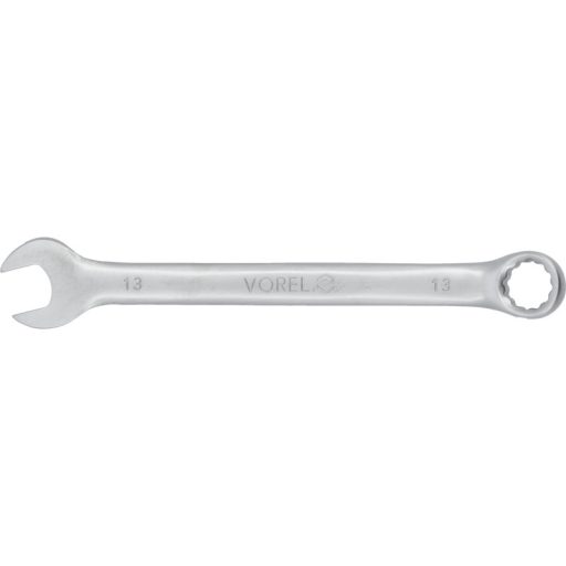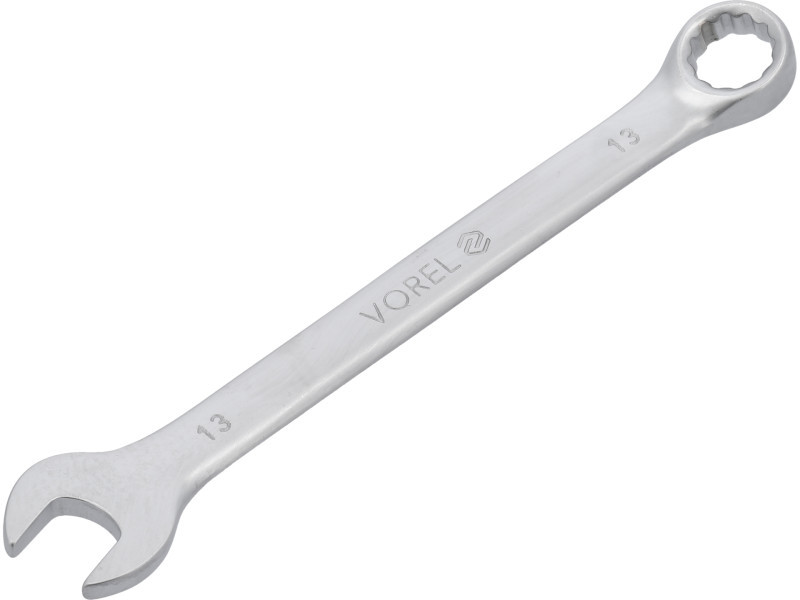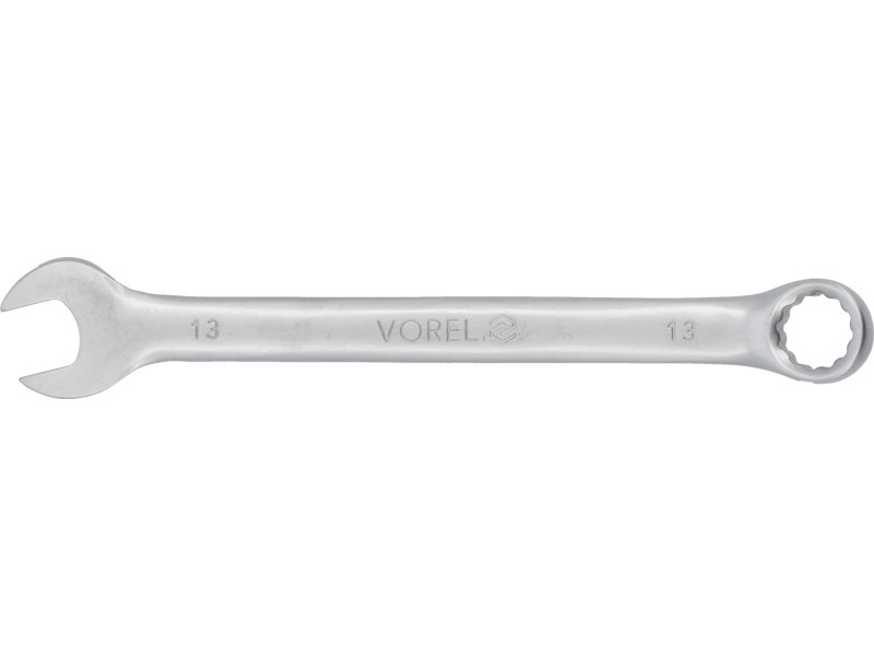 13 mm flat key from Vorel 51678. Made of CRV chrome-vanadium steel. Matrical forged key, perfectly tuned. The satin finish is minimized by the slip of the pollution key. A two -angle eyelet tip, additionally bent, which makes it easier to maneuver with the key.