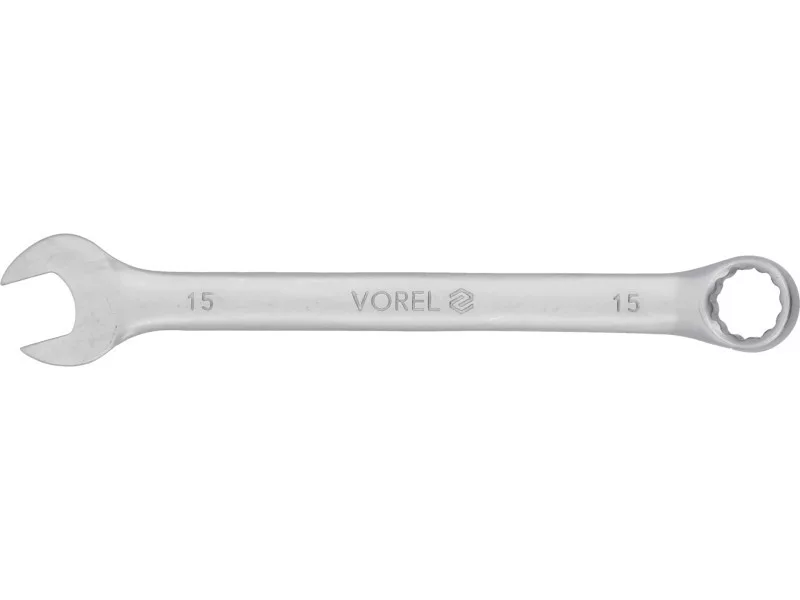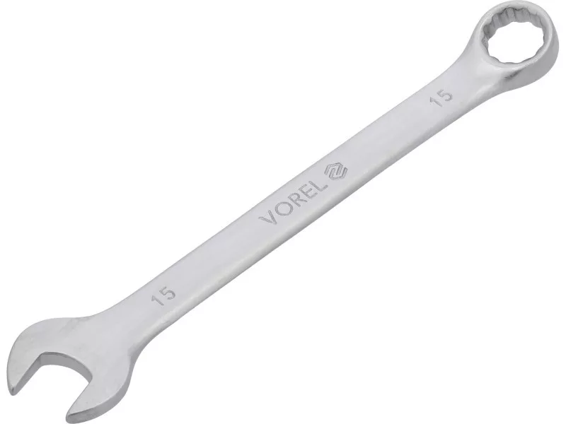 15 mm flat key from Vorel 51680. Made of CRV chrome-vanadium steel. Matrical forged key, perfectly tuned. The satin finish is minimized by the slip of the pollution key. A two -angle eyelet tip, additionally bent, which makes it easier to maneuver with the key.
