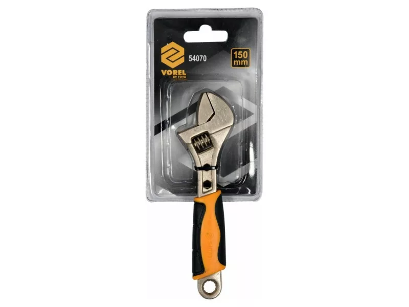 Discover the reliability of the Vorel adjustable wrench with index 54070. Made of carbon steel and equipped with an ergonomic handle, it ensures comfort and precision during work.