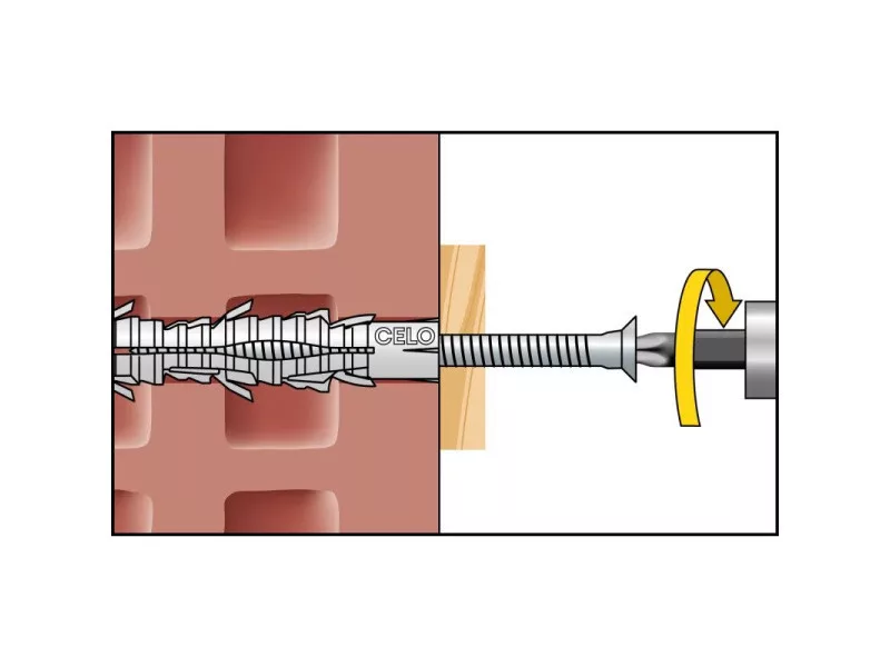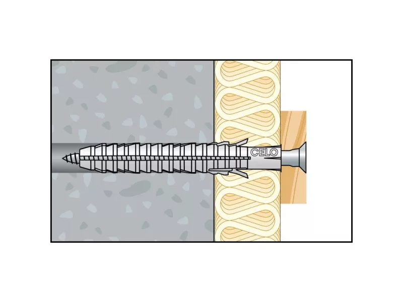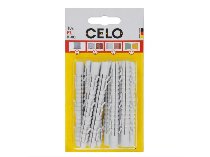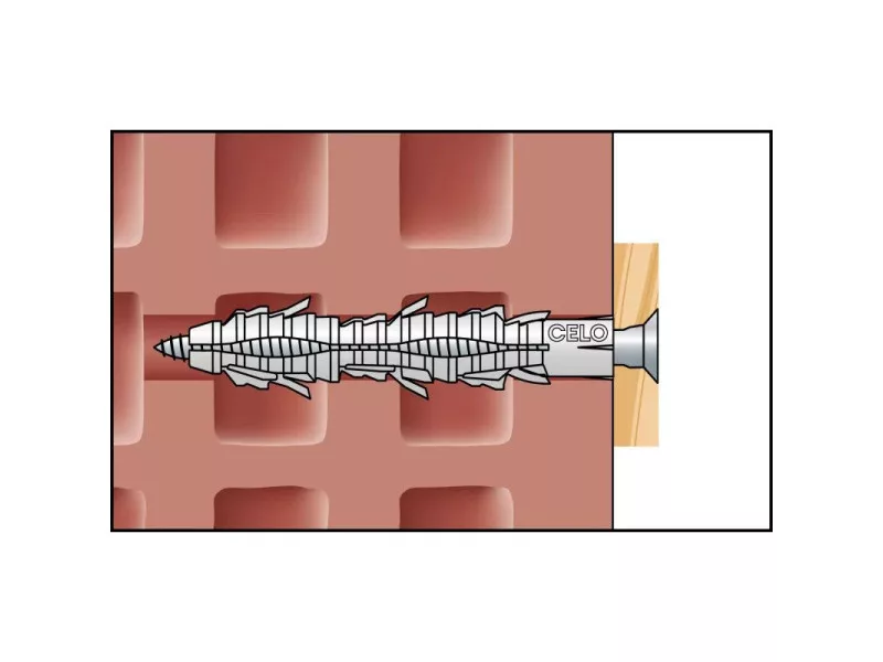 Der CELO FL extra lange Nylon-Dübel ist dank seines langen Expansionsbereichs gleichermaßen in massiven und hohlen Baustoffen oder porösen Strukturen (z.B. alte Gebäude) einsetzbar. Der kopflose Kragen ermöglicht die Durchsteckmontage. Die Flügelkonstruktion verhindert das Verdrehen im Bohrloch. Der Dübel ist aus hochwertigem, alterungsbeständigem Nylon gefertigt.
