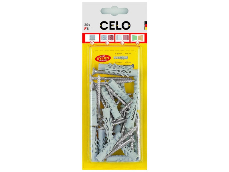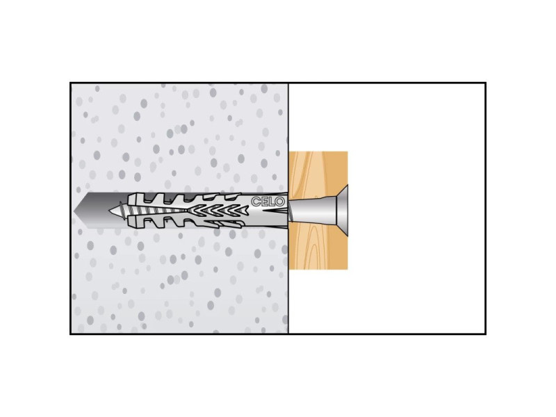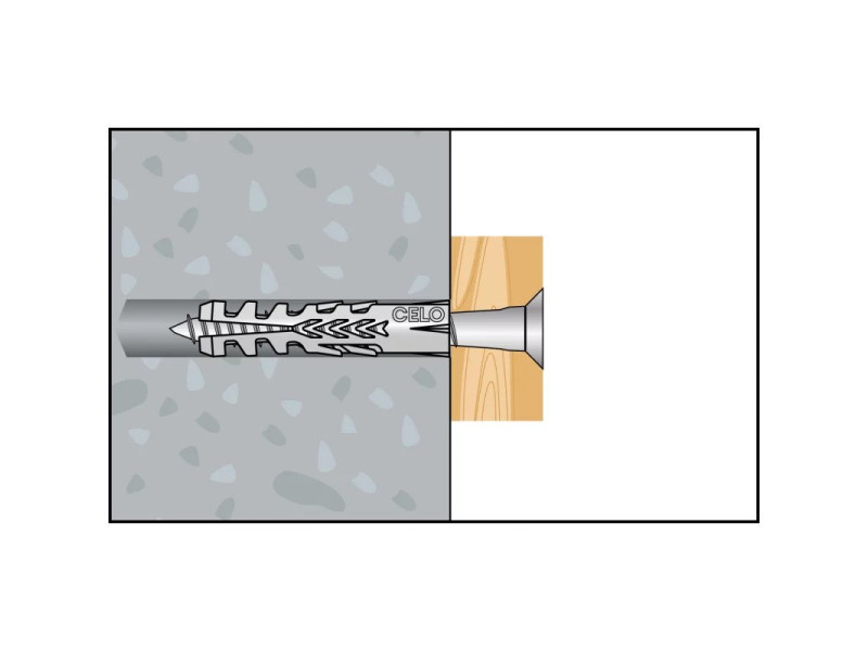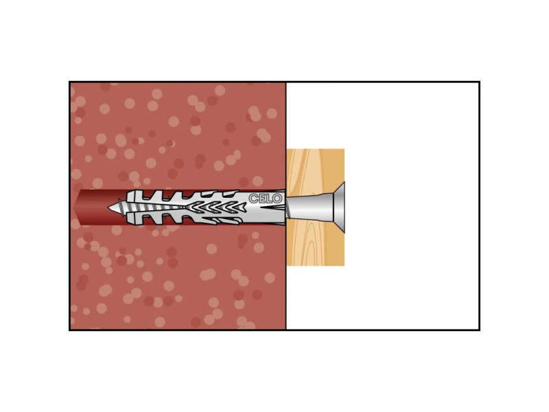 Dank seiner hohen Expansionsfähigkeit bietet der Allzweckdübel F von CELO hohe Auszugswerte. Er ist in einer großen Auswahl an Größen von 4-20 mm Durchmesser erhältlich. Der Allzweckdübel F ist eine ideale Wahl für Massivbaustoffe, bietet aber auch gute Belastungswerte in hohlen Ziegel- und Porenbetonstrukturen. Dank seiner guten Schraubenführung bewegt sich die Schraube während des Eindrehens nicht.