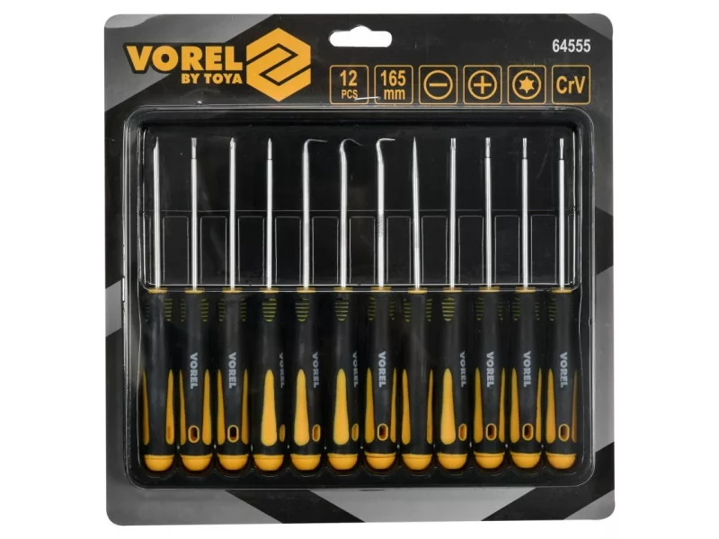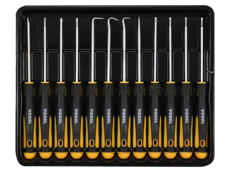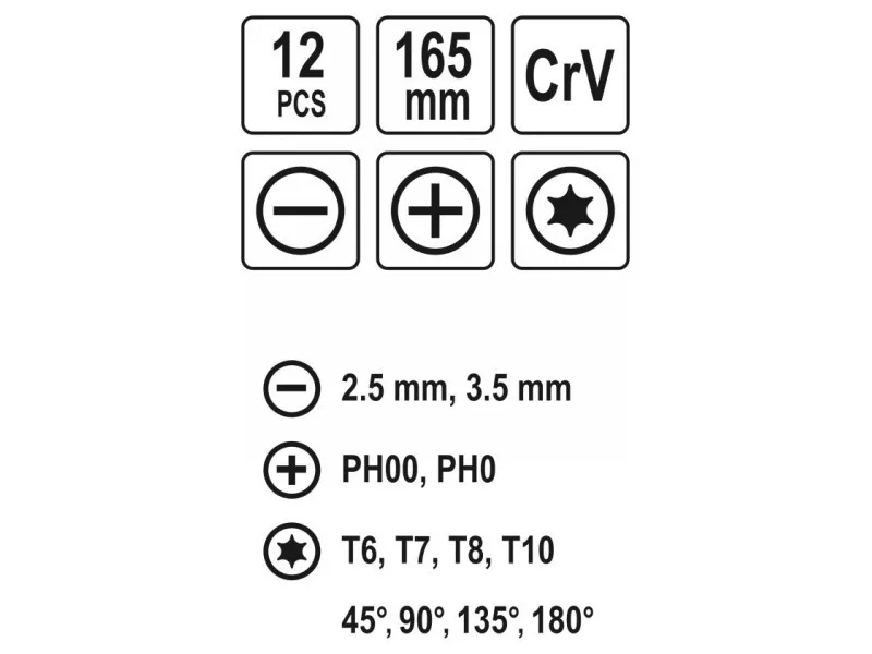 Set of 12 precise screwdriver & oacute; in and hook & oacute; in intended for universal applications in R & oacutene industries. ACUTE; WW SET SCRENNITIES: FLAT: 2.5 mm , 3.5 mm, cross: & nbsp; PH00, PH0, TORX: T6, T7, T8, T10, 45 & Deg;, 90 & DEG;, 135 & deg;, 180 & deg;