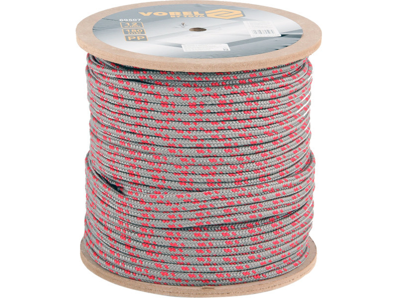 Braided rope made of 24 polypropylene fibers, supplemented with a polypropylene tear-resistant core.