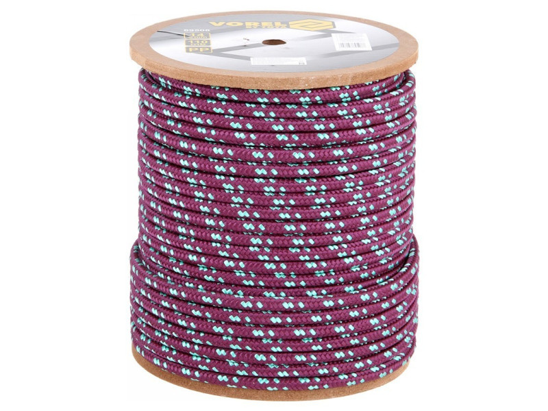 Braided rope made of 24 polypropylene fibers, supplemented with a polypropylene tear-resistant core.