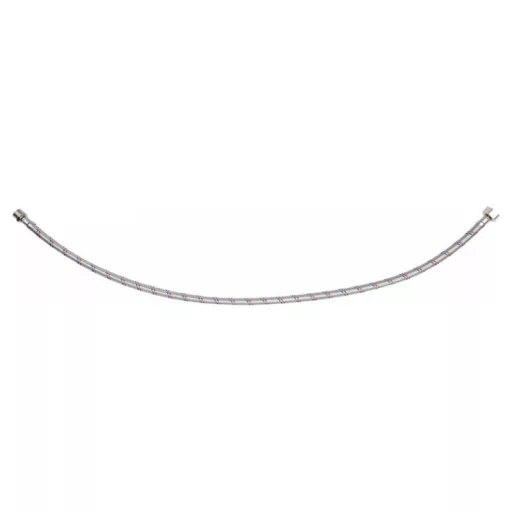 Flexible stainless steel braided connection hose. It is designed for hot and cold water. It has a PZH certificate for contact with drinking water. Length 800mm. Max pressure 1MPa. Max temp 90st C. Average flow rate 32L/min. Inner diameter 8mm, and outer diameter 12mm. Connection thread: female 1/2" x male 3/8". Rubber hose made of EPDM rubber, nickel-plated brass connections, EPDM rubber gasket. It is designed from connecting toilet cisterns or valves.