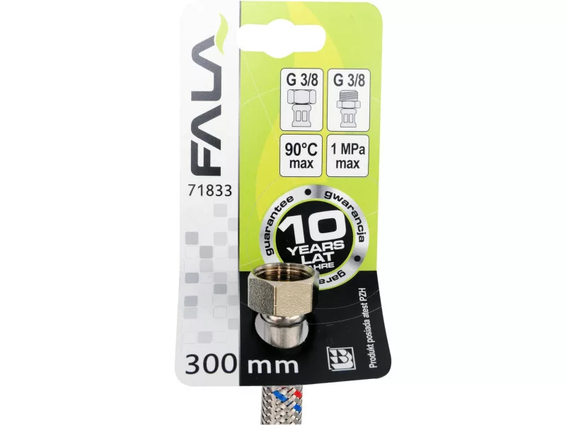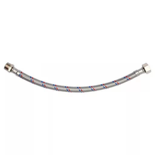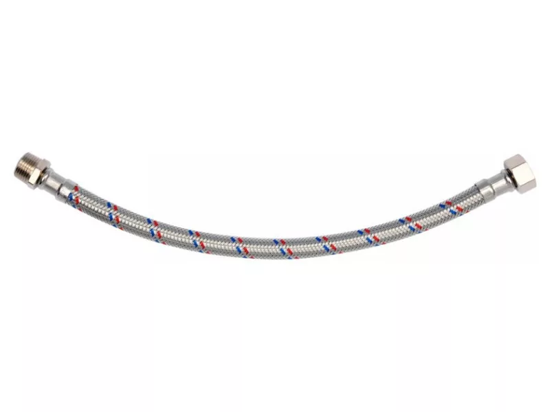 Flexible stainless steel braided connection hose. It is designed for hot and cold water. It is approved by the PZH for contact with drinking water.