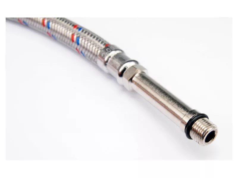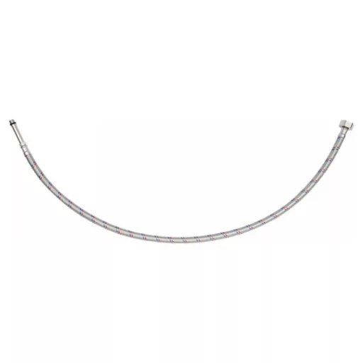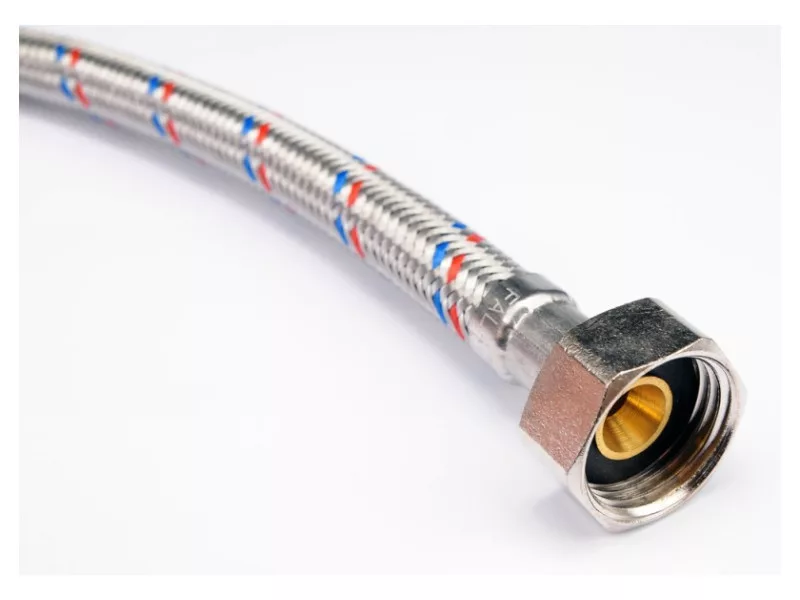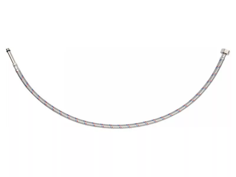 Flexible stainless steel braided faucet connection hose. It is designed for hot and cold water. It is certified by the National Institute of Hygiene for contact with potable water. It is designed from the connection of stilettos washbasin and bathtub faucets with valves.