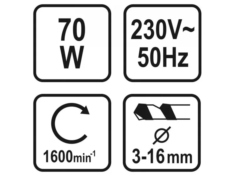 | Drilling diameter | 3-10 (58 mm disc), 8-16 (talerz 70 mm) mm |