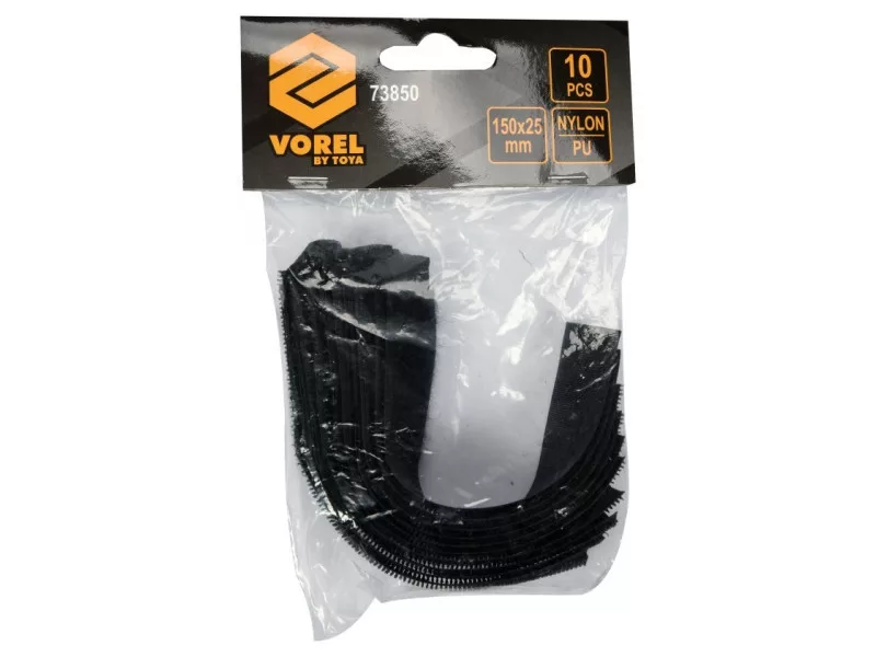 Velcro ties by VOREL 73850, designed for fixing and fastening cables. They can be used in households (e.g. to organize computer and TV cables), as well as by installers and professionals (e.g. when laying cables under skirting boards).