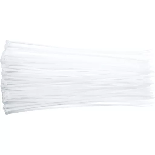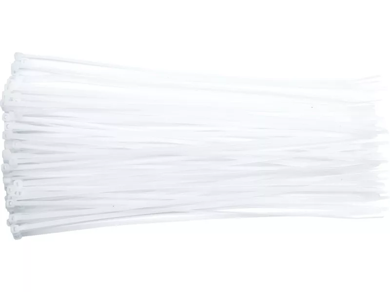 Clamp with dimensions of 200x2.5 mm. White color. Made of PA6.6UL P4V2 modified polyamide - NYLON Tearing force: max 8 kg Max cable bundle diameter: 50 mm Number of pieces per package: 100 pieces Thanks to the use of a special formula of modified polyamide, VOREL cable ties are characterized by: - enhanced resistance to tearing - very good mechanical properties - increased resistance to UV radiation - resistance to grease and oil The ties have evenly distributed serrations on one side. By guiding the end of the tie through the head, it is tightened to a certain size. Its retraction (opening) without damage becomes impossible. The close arrangement of the serrations allows you to precisely adjust the loop to the circumference of the element to be fastened. The max Ø of the cable bundle, given in the table, makes it easier to choose the appropriate length of the tie according to your needs.