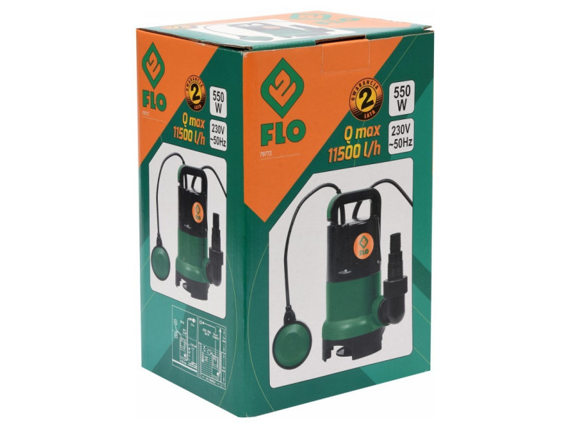 Efficient submersible pump FLO 550W with housing made of impact-resistant plastic used for pumping, aerating and circulating clean and contaminated water from rainótanks, wells.