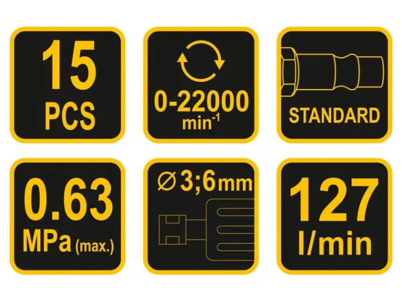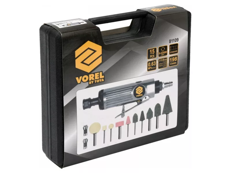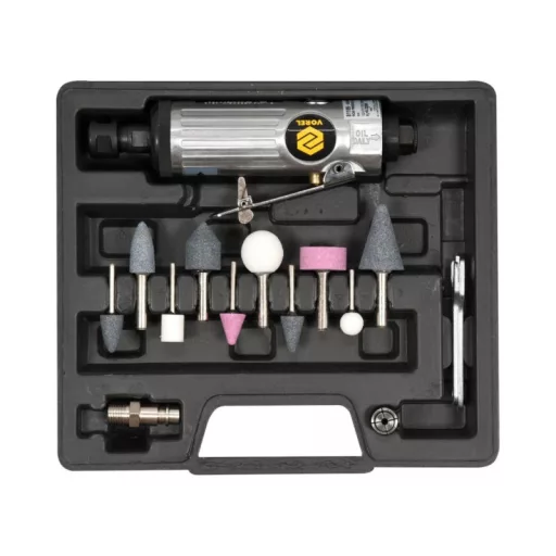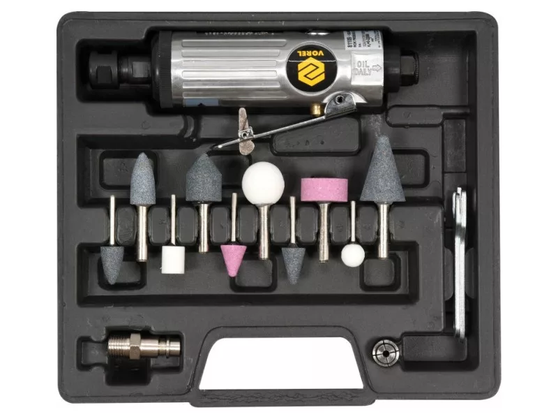 | Set includes | pneumatic grinder 81108, hose connector, reduction, tool holder key x2, grindstones x10 |