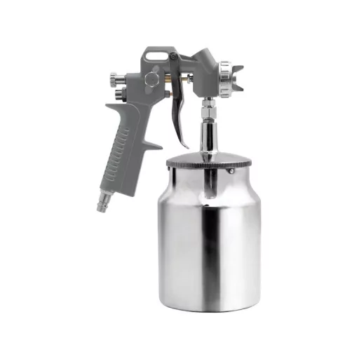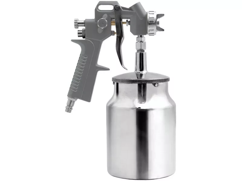 The spray gun is used to perform paint work. The factor necessary for the proper operation of the gun is compressed air. The paint from the gun tank and the compressed air supplied to the gun, form a mixture of paint particles and air at the outlet of the gun nozzle.
