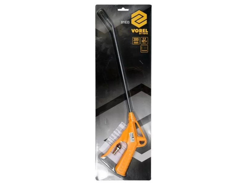 A pistol with an extension extension with compressed air. Ideal for applications & nbsp; in the website and home workshop. & Nbsp; Maks. Working pressure: 0.8 MPASTANDARD connection 1/4 & rdquo; made of durable plastic nozzle: 300 mm