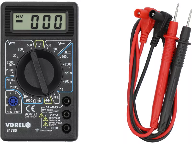 Universal meter 81780 with manual range for each measurement allows for basic electrical measurements.