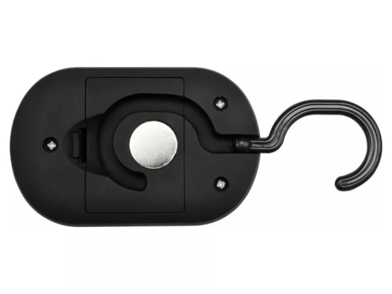 82731 is a handheld lamp equipped with 24 state-of-the-art SMD LEDs providing a solid, diffused light output. The lamp can also emit focused light, serving the function of a flashlight thanks to three additional LEDs installed on the lamp's face. The fixture has a magnet and a folding swivel hook. The lamp is powered by 3xAAA batteries, which are not included. Replacing the batteries does not require a screwdriver.