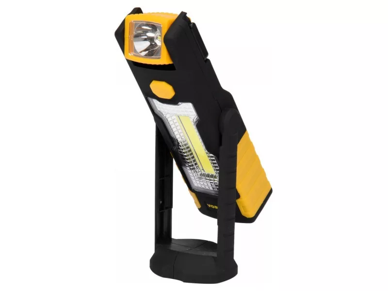 Universal lamp with 360° rotating body and flashlight. Useful for work that requires illumination of the work area.