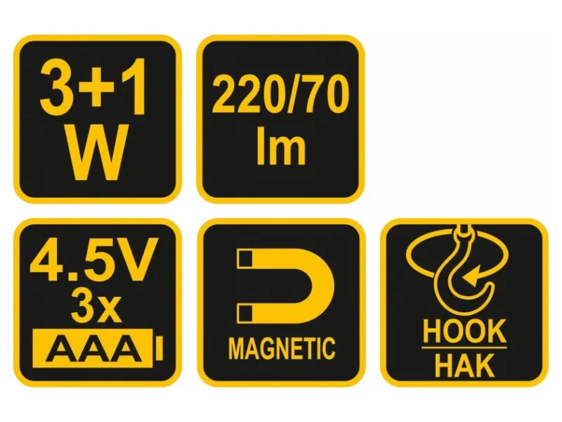 • luminous flux: 220 lm - main lamp, 70 lm - flashlight