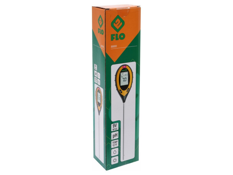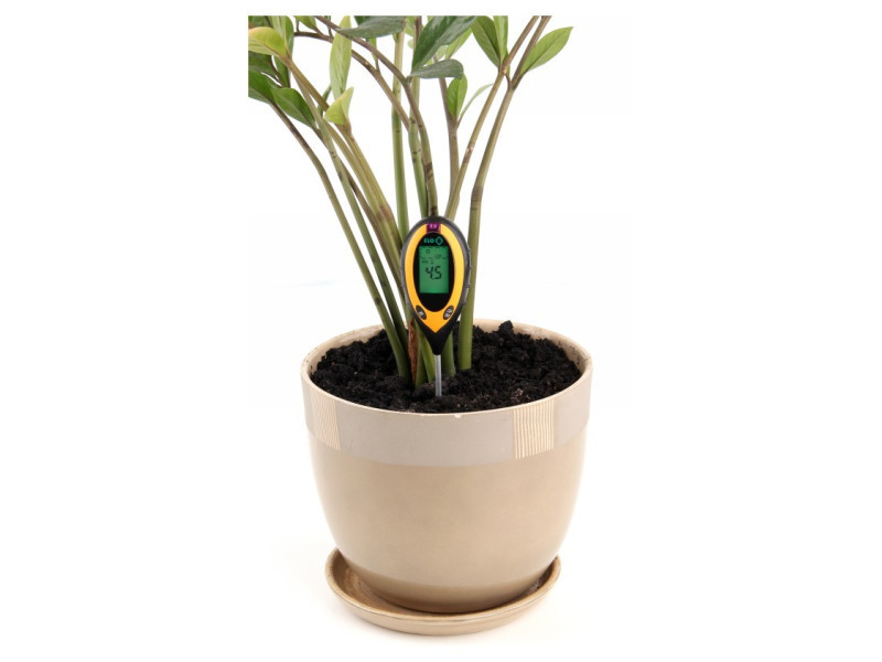 The garden meter measures four values: - soil moisture, - soil pH reagent, - soil temperature - lighting intensity. Meter, so -called The soil acid meter is equipped with a 20 cm long probe and a clear LCD display for easy and reading. If the probe is not stuck into the ground, the ambient temperature will be shown. The device has an automatic switching off function, which affects the life of the battery.