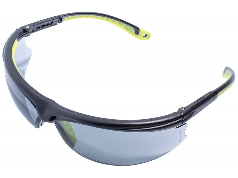 Funktionale Arbeitsschutzbrille mit verschiedenen Linsenoptionen.