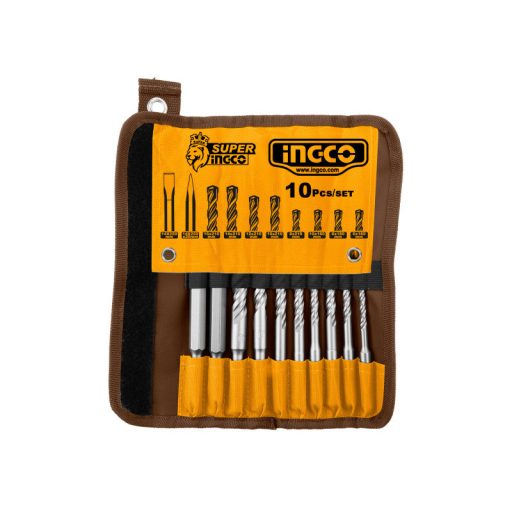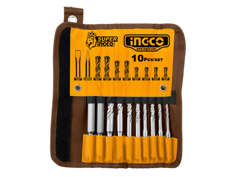 Lieferumfang: 8 Stück SDS-Plus Steinbohrer, 2 Stück SDS-Plus Meißelschäfte, Verpackung in Leinentasche