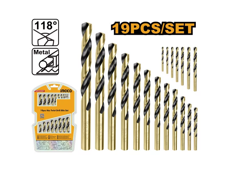 INGCO Spiralbohrer-Set 19-teilig 1-10 mm HSS zylindrisch