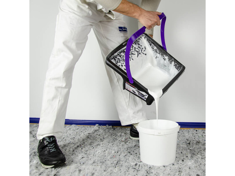 Vertiefung in der Ecke des Eimers für einfaches Ausgießen der Farbe