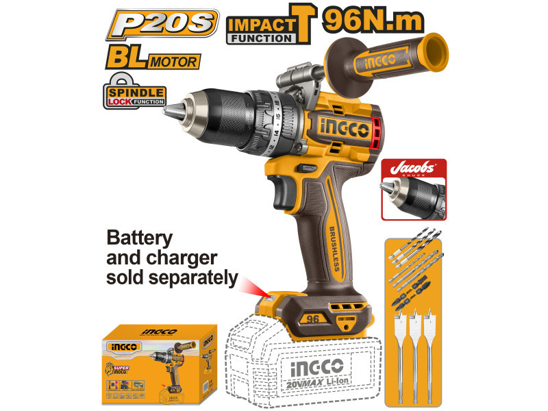 INGCO akkus ütvefúró-csavarozó 96 Nm, szénkefe nélküli