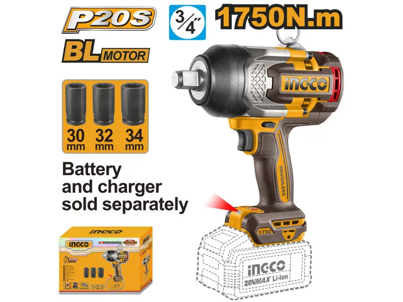 INGCO Akku-Schlagschrauber 3/4" 1750 Nm – bürstenloser, 20V