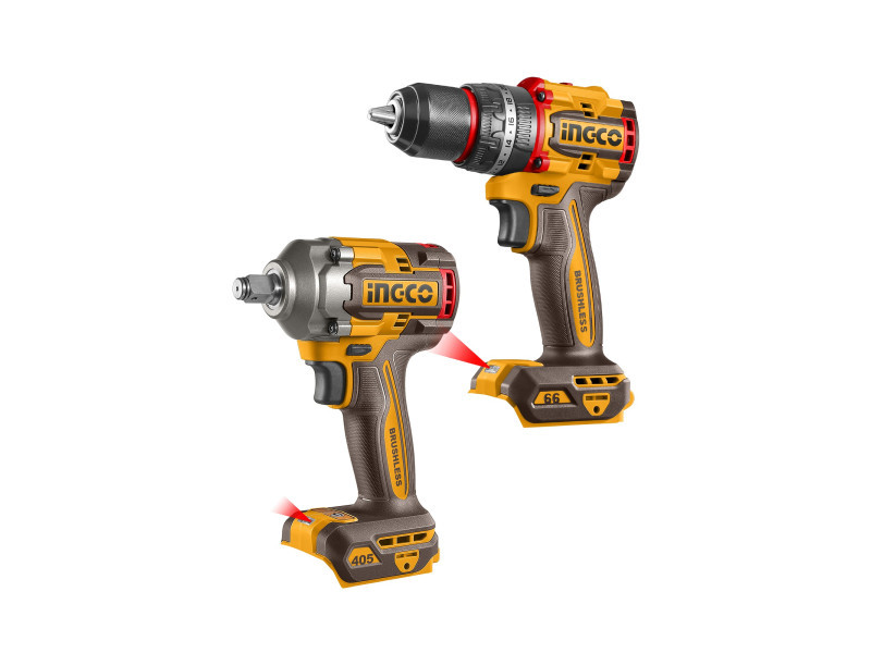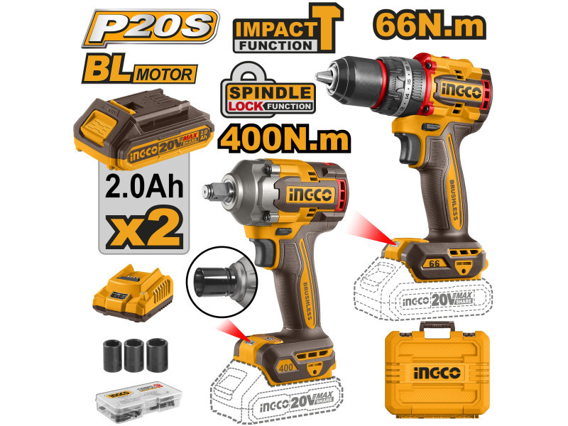 INGCO Akku-Power-Set 20 V Schlagbohrschrauber 66 Nm + Schlagschrauber 1/2" 405 Nm (2 Akkus + Ladegerät)