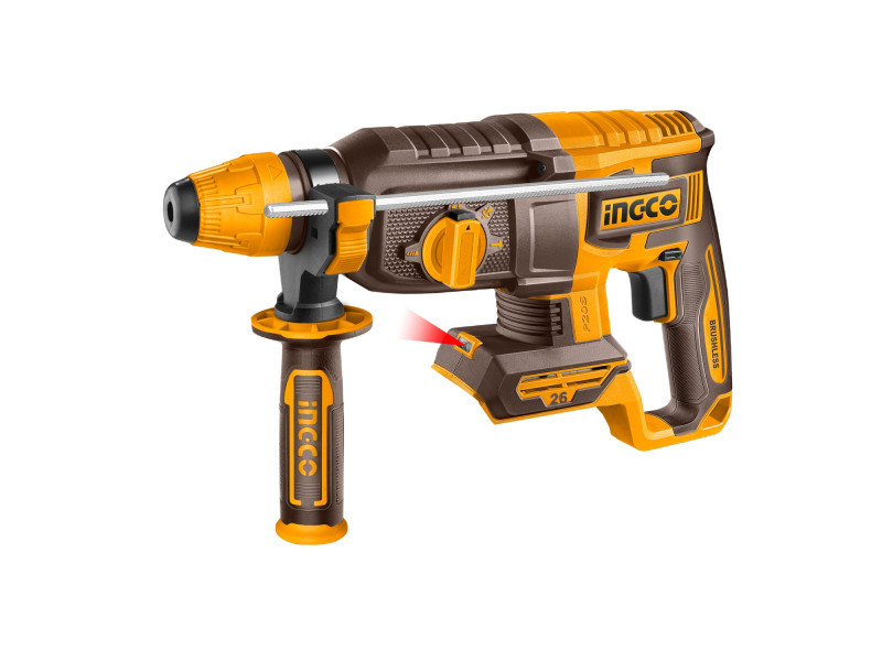 Az INGCO 20V-os akkus kombikalapács erős és sokoldalú szerszám beton, acél és fa fúrásához, valamint vésési feladatokhoz. A szénkefe nélküli motor nagy hatékonyságot, hosszabb élettartamot és stabil teljesítményt biztosít intenzív használat mellett is.
