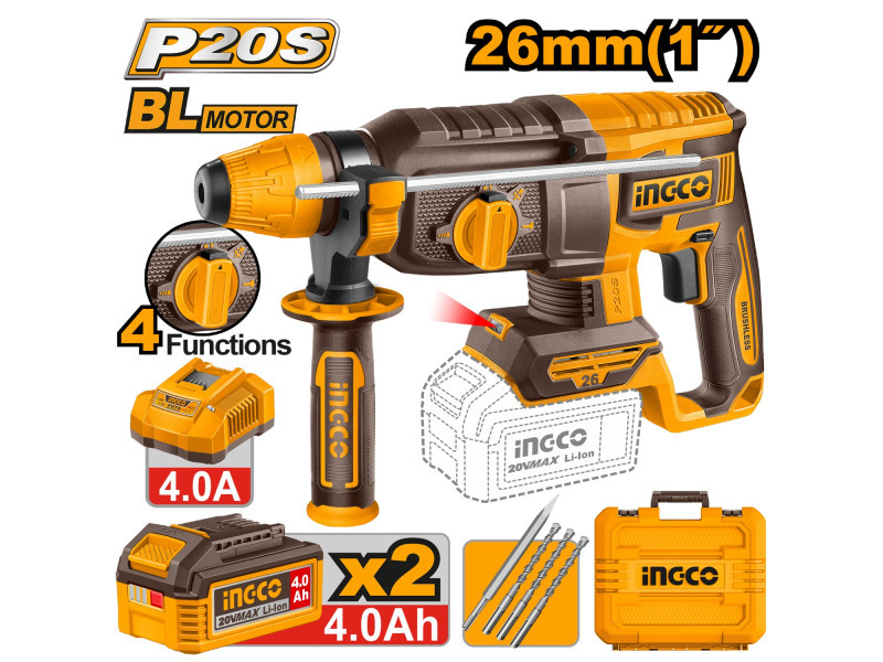 INGCO akkus kombikalapács 2,5 J SDS-Plus – szénkefe nélküli, 20V