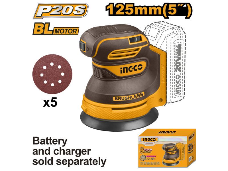 INGCO Akku-Exzenterschleifer bürstenlos 20 V (ohne Akku und Ladegerät)