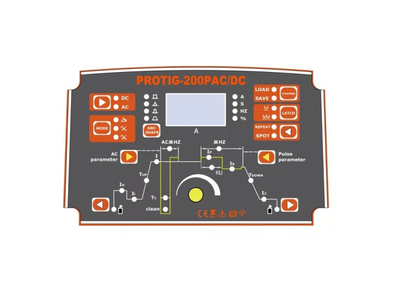 Die Kombination aus voreingestellter Gasvorlaufzeit, Startstrom, Rampenzeit, Endstrom und Gasnachlaufzeit, kombiniert mit der 2T- oder 4T-Funktion, ermöglicht den Schweißprozess auf höchstem professionellen Niveau. Mit der digital gesteuerten Impulsfrequenz können Sie die vollständige Parametrierung von Spitzenstrom, Basisstrom, Impulsfrequenz und Impulsbreite vornehmen, was eine Manipulation der Arbeitswärmeleistung, die Tiefe der Verbrennung (Schweißen) und die Minimierung der Verzerrung ermöglicht.
