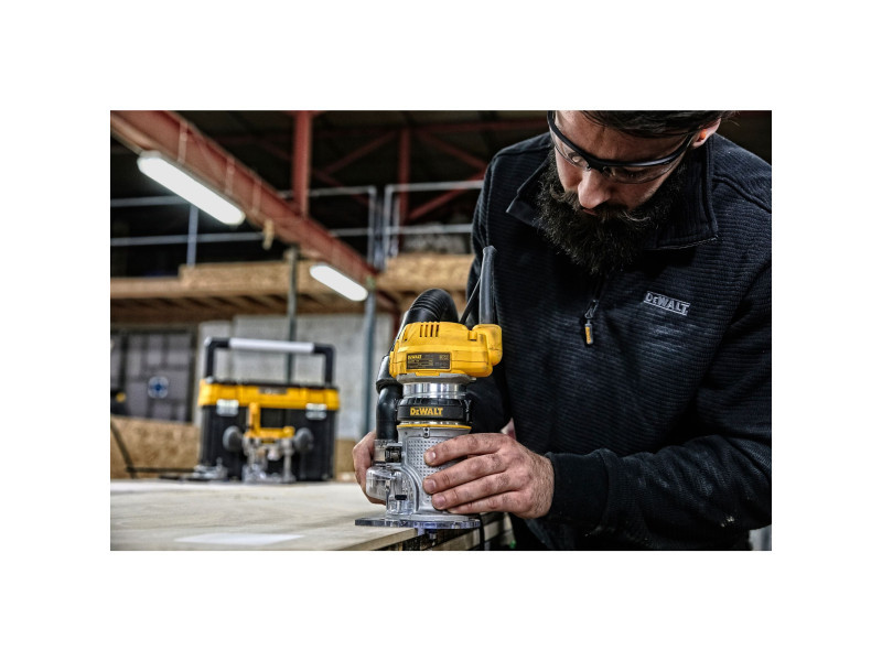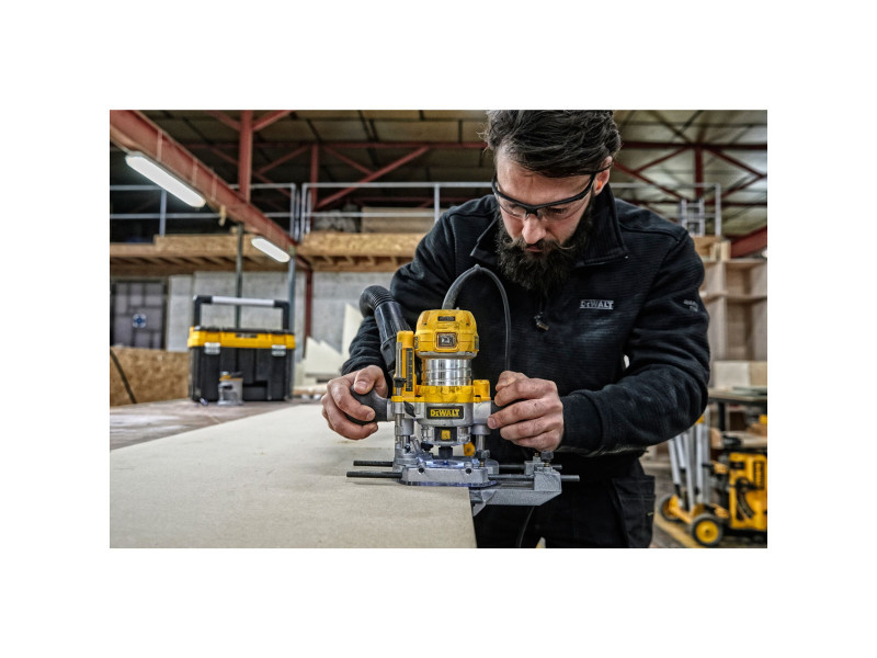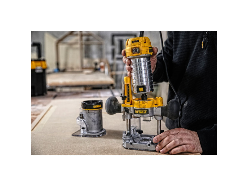 Kombinierte Fräsmaschine, bestehend aus einer D26203 Oberfräse (Fräsmotor mit Taucheinheit) und einem Umbausatz, der eine D262005 Kopiereinheit (separat erhältlich) enthält, die die Verwendung des Fräsmotors als Dickenhobelmaschine ermöglicht.